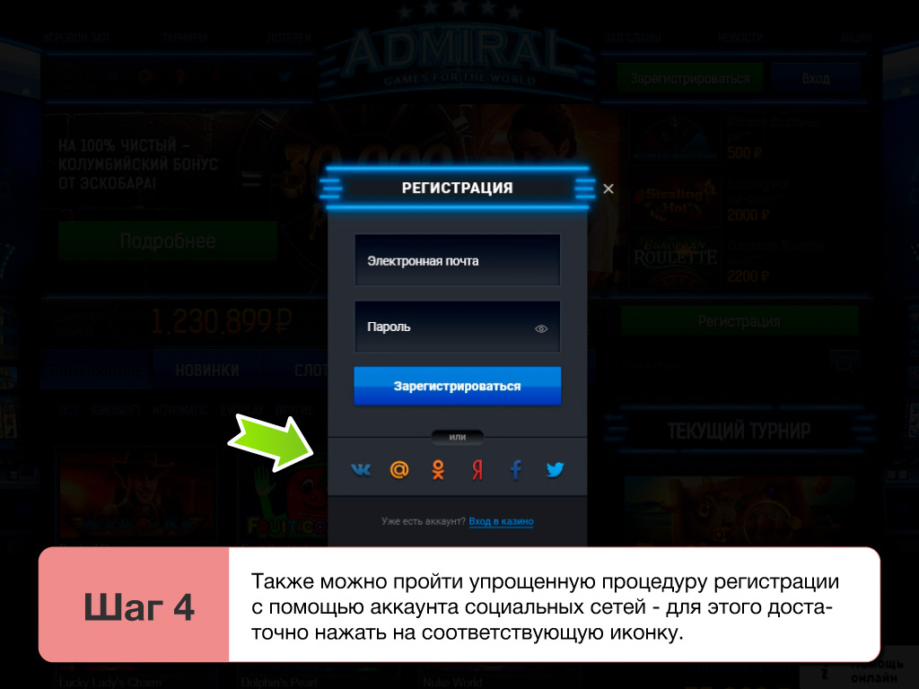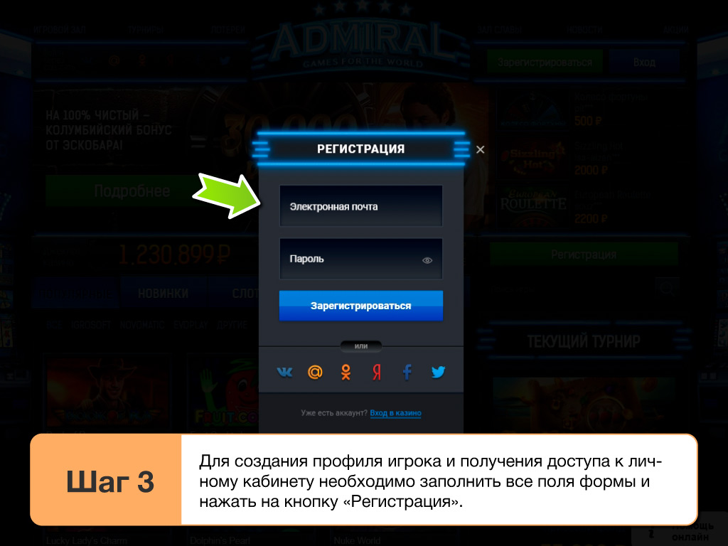 Чтобы начать пользоваться всеми играми Admiral casino 2026 в платном режиме придется пройти регистрацию. Без этого к серьезны выигрышам попросту не допустят. На деле, зарегистрироваться, чтобы начать играть очень просто и делается это на официальном сайте так:
