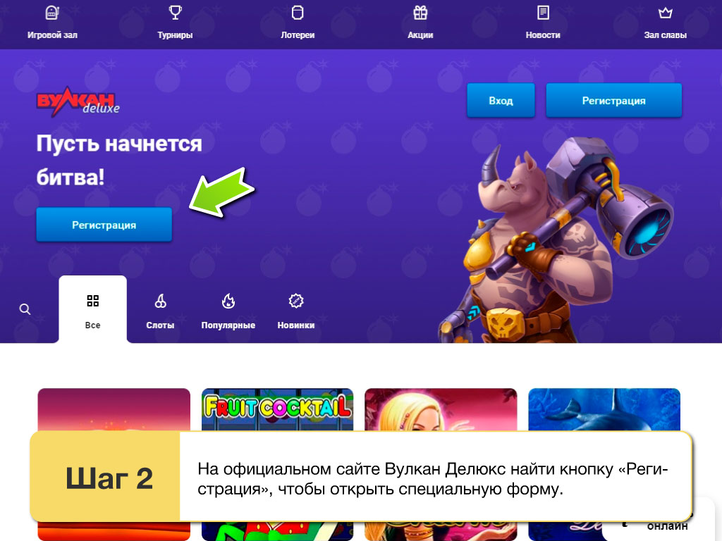 Прохождение регистрация на официальном сайте Vulcandeluxe club