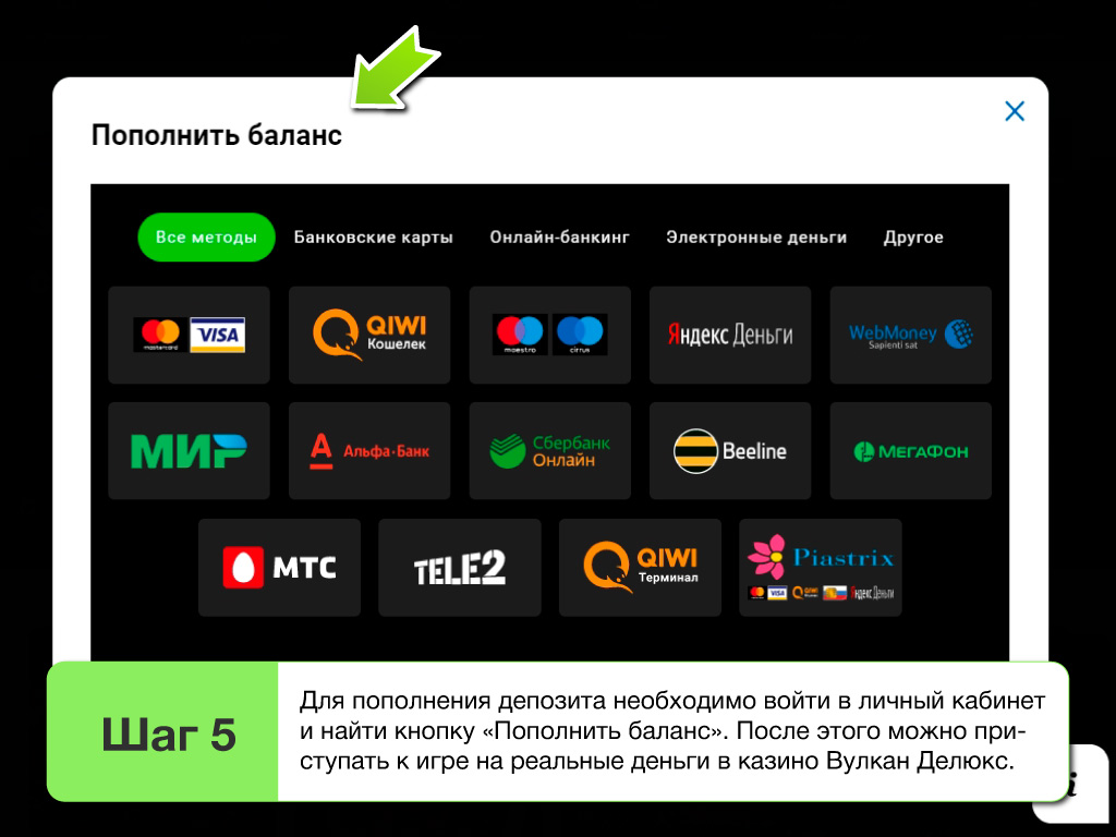 Минимальный депозит, который можно сделать в Vulkandeluxe casino 2026 составляет 500 рублей. Столько же минимально можно вывести, меньше не разрешают. Сделать депозит или забрать выигрыши можно с помощью следующих платежных систем: